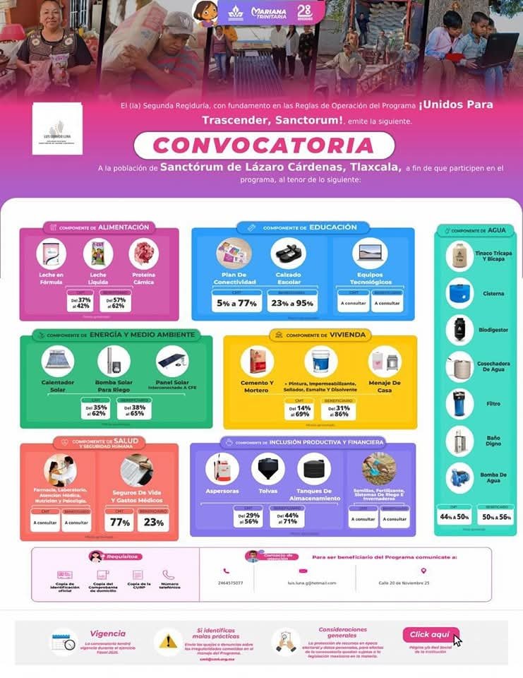 Tlaxcala, Tlax, a 21 de mayo de 2025/Redacción/ El gobierno municipal de Sanctórum de Lázaro Cárdenas que encabeza el alcalde Iván Alejandro Alemán Juárez, en coordinación con el regidor de salud Luis Gerardo Luna, dieron a conocer que se abrió la ventanilla del programa de material subsidiado por parte de la Congregación Mariana Trinitaria, como son calentadores solares, tinacos, cisternas, cemento, estuco, entre varios.