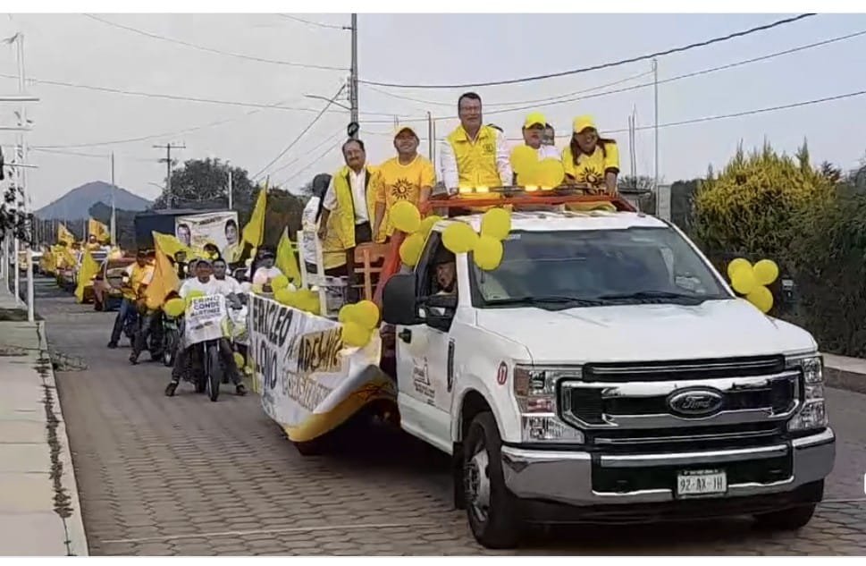 Tlaxcala, Tlax, a 29 de mayo de 2024/JL Hertewing/ El candidato a la presidencia municipal de Santa Cruz Tlaxcala por el Partido de la Revolución Democrática (PRD), llevo a cabo la tarde de este miércoles su espectacular cierre de campaña recorriendo cada una de las comunidades donde les pedía a los ciudadanos que acudan este 2 de junio a las urnas y voten por quien si quiere un verdadero cambio y que este se vea reflejado en mejorar la calidad de vida de los pobladores.