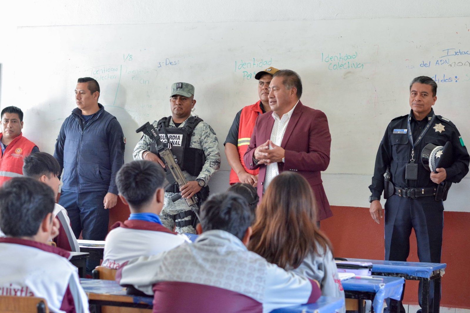 Hernández Olivares durante su recorrido por las escuelas del centro estuvo acompañado de las diferentes corporaciones policiacas como la Guardia Nacional GN, policía estatal SSC y seguridad pública municipal, además del coordinador de protección civil del municipio, donde dialogaron con la población estudiantil, para exhortarlo a que coadyuven a su cuidado al ir a su escuela y de regreso a su casa, resalto.