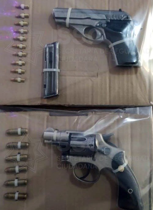 La Secretaría de Seguridad Ciudadana (SSC), a través de la Dirección de Operaciones, aseguró a dos masculinos por el delito de portación ilegal de dos armas de fuego, en el municipio de Papalotla.