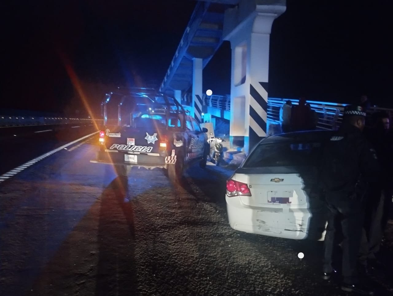 Durante la persecución para detener al agresor este les disparo a las unidades policiacas quienes respondieron de igual manera lo que obligo al conductor emprender la huida sobre la carretera federal México-Veracruz a la altura del libramiento de la colonia Playa Azul, donde este pierde el control de su unidad lo que ocasiono que se impactara contra la base de un puente peatonal y aun ahí intento darse a la fuga pie-tierra donde fue detenido.