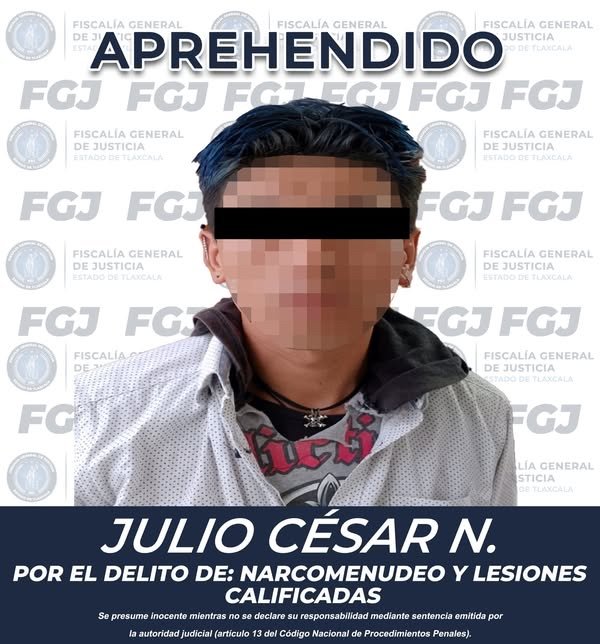 Derivado de una denuncia ciudadana, la Policía de Investigación de la Fiscalía General de Justicia del Estado (FGJE) realizó la detención de Julio César N., por los delitos contra la salud en su modalidad de narcomenudeo y lesiones calificadas.