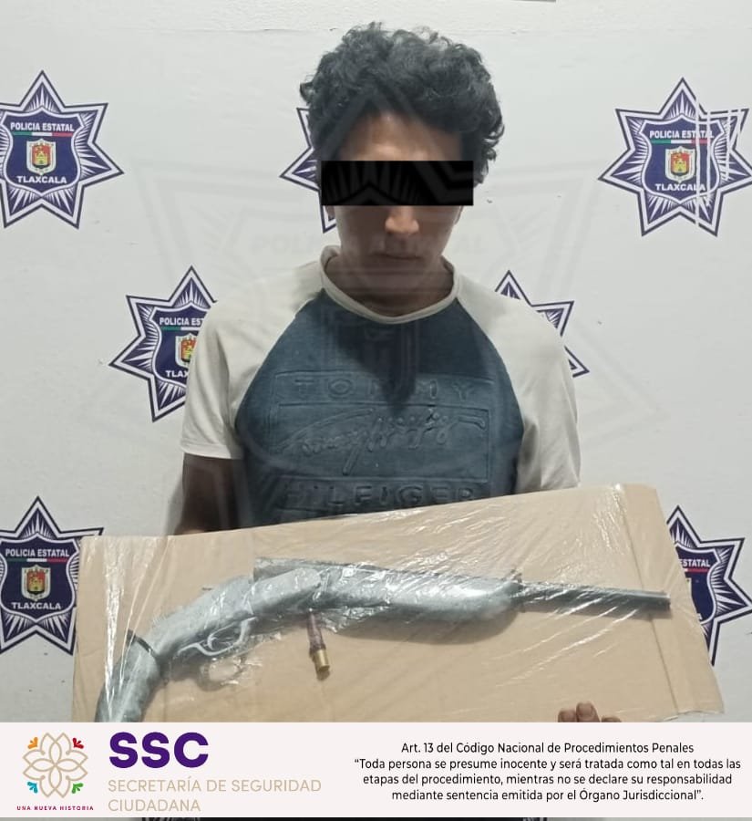 La Secretaría de Seguridad Ciudadana (SSC), a través de la Dirección de Operaciones de Apizaco, aseguró a un hombre por el delito de portación ilegal de un arma de fuego, en el municipio de Tzompantepec.