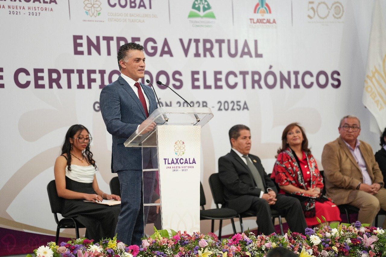 En multitudinaria ceremonia, el presidente municipal de Tlaxcala, Alfonso Sánchez García, apadrinó a la generación 2022–2025 del Colegio de Bachilleres de Tlaxcala (COBAT), en un acto sin precedentes en el estado en materia educativa, pues la gobernadora Lorena Cuéllar Cisneros encabezó la primera entrega simultánea y digital de certificados a 5 mil 200 jóvenes de los 24 planteles y cinco telebachilleratos que conforman el subsistema educativo.