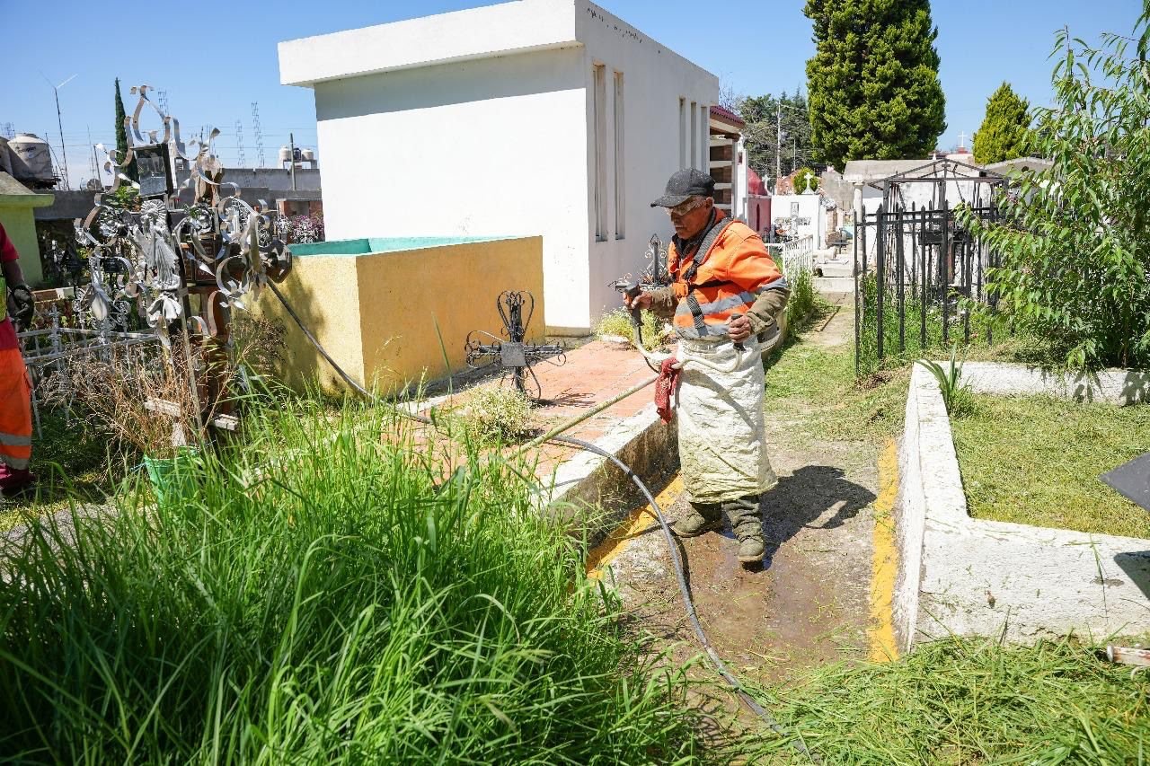 Como una forma de mejorar las condiciones de los espacios públicos y preservar la dignidad de sitios con alto valor para las comunidades, el Ayuntamiento de Tlaxcala, que preside Alfonso Sánchez García, llevó a cabo jornadas intensivas de limpieza y rehabilitación en los panteones de Santa María Ixtulco y Ocotlán.