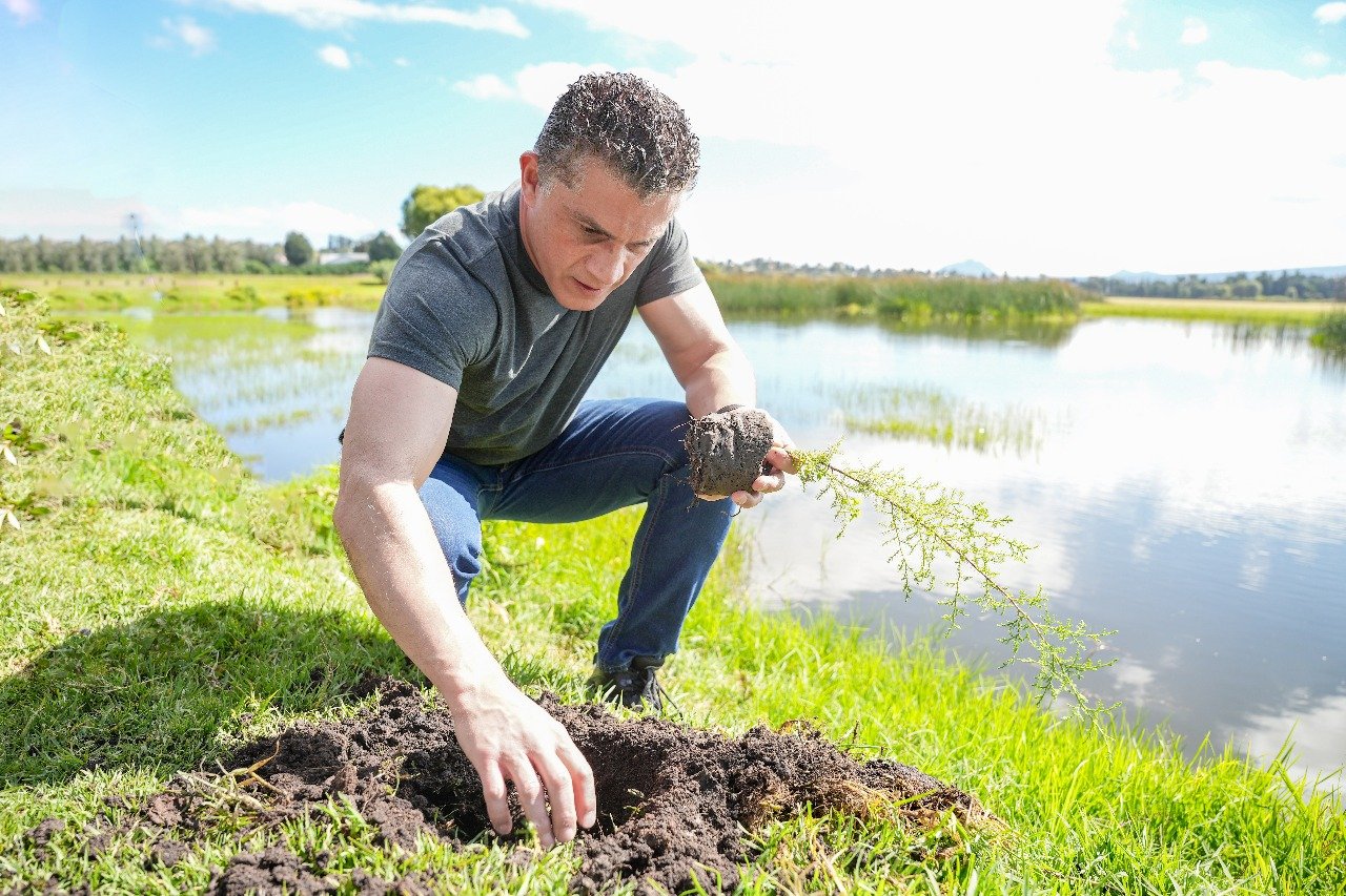 El presidente municipal de Tlaxcala, Alfonso Sánchez García, encabezó este martes una jornada de reforestación en la ribera de la Laguna de Acuitlapilco, acompañado por vecinos, asociaciones civiles, pescadores y voluntarios.