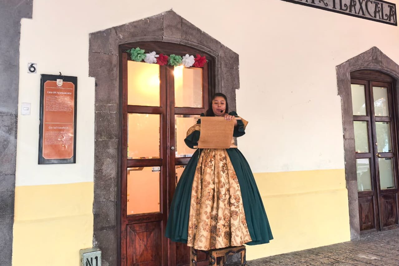 Con campana en mano, La Pregonera del Rey narró con el pergamino extendido los acontecimientos más importantes que dieron forma a la capital, su andar y su voz transportaron a las personas a distintos episodios que han marcado los últimos cinco siglos de la ciudad.