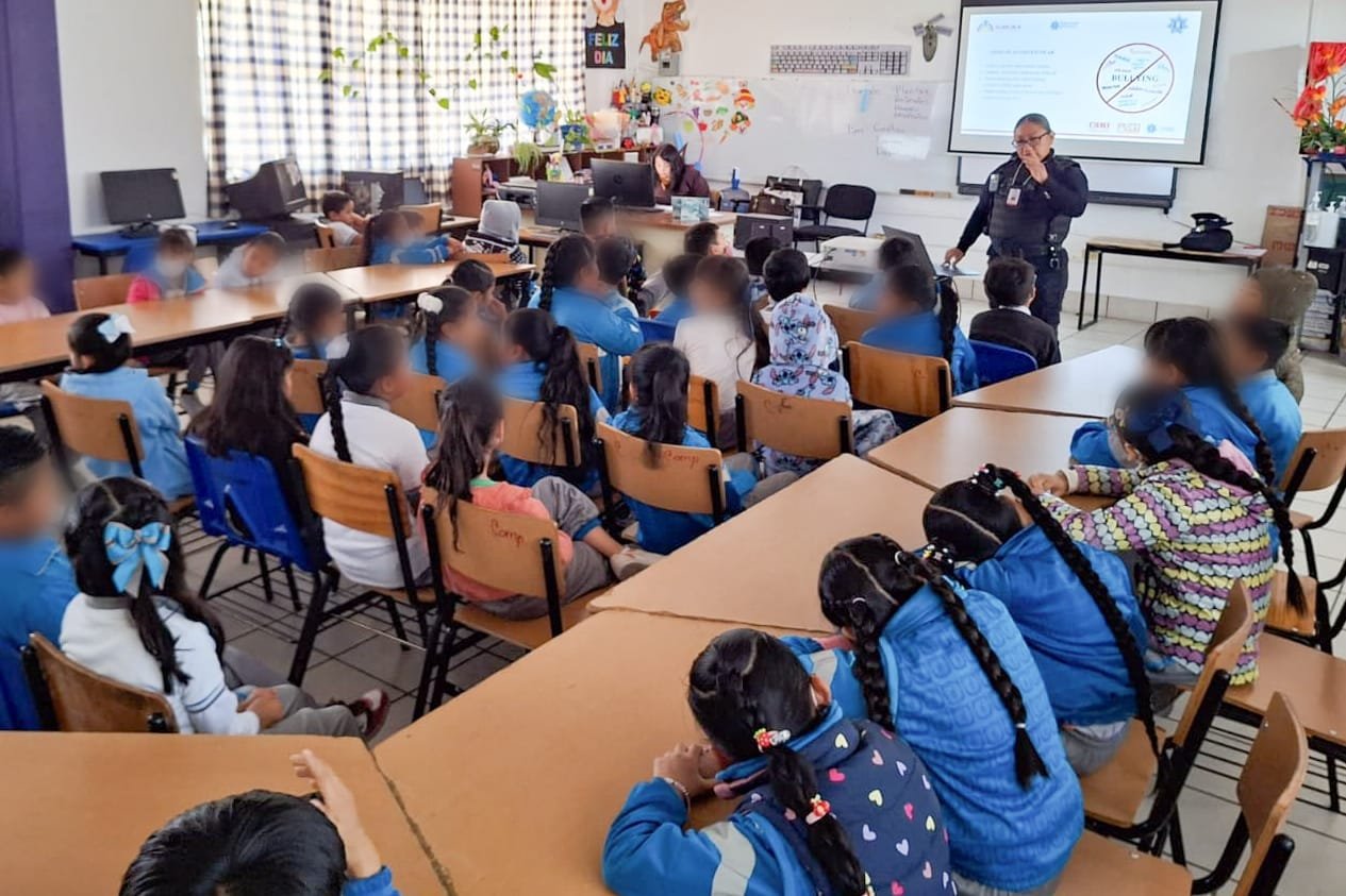La Policía Municipal de Tlaxcala reforzó su labor de proximidad social al impartir una plática de prevención del delito a estudiantes de la Escuela Primaria Héroes de Chapultepec, ubicada en la comunidad de Ocotlán.