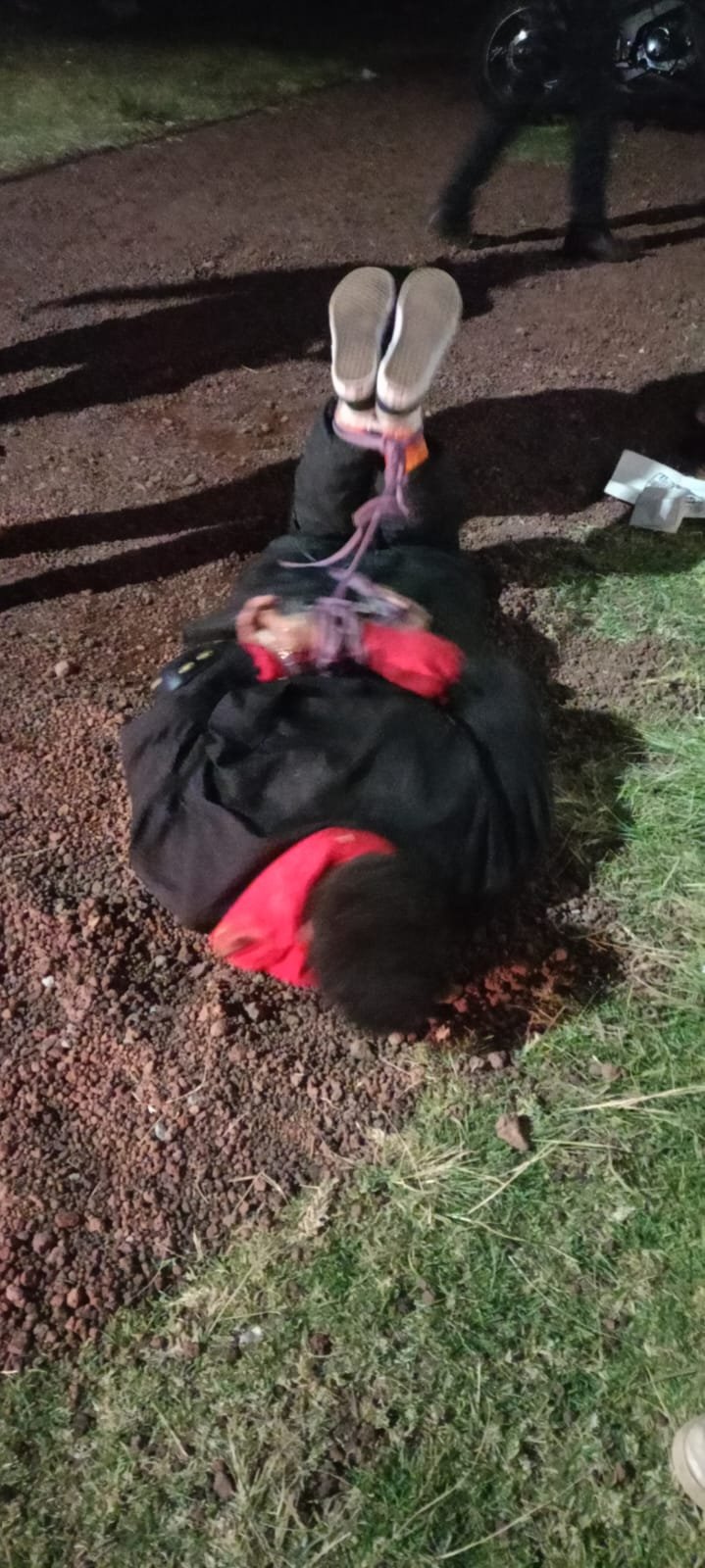 Al llegar, encontraron a un masculino amarrado con lazo y cinta plástica, señalado por el propietario del domicilio como responsable de ingresar de manera ilegal a su hogar.