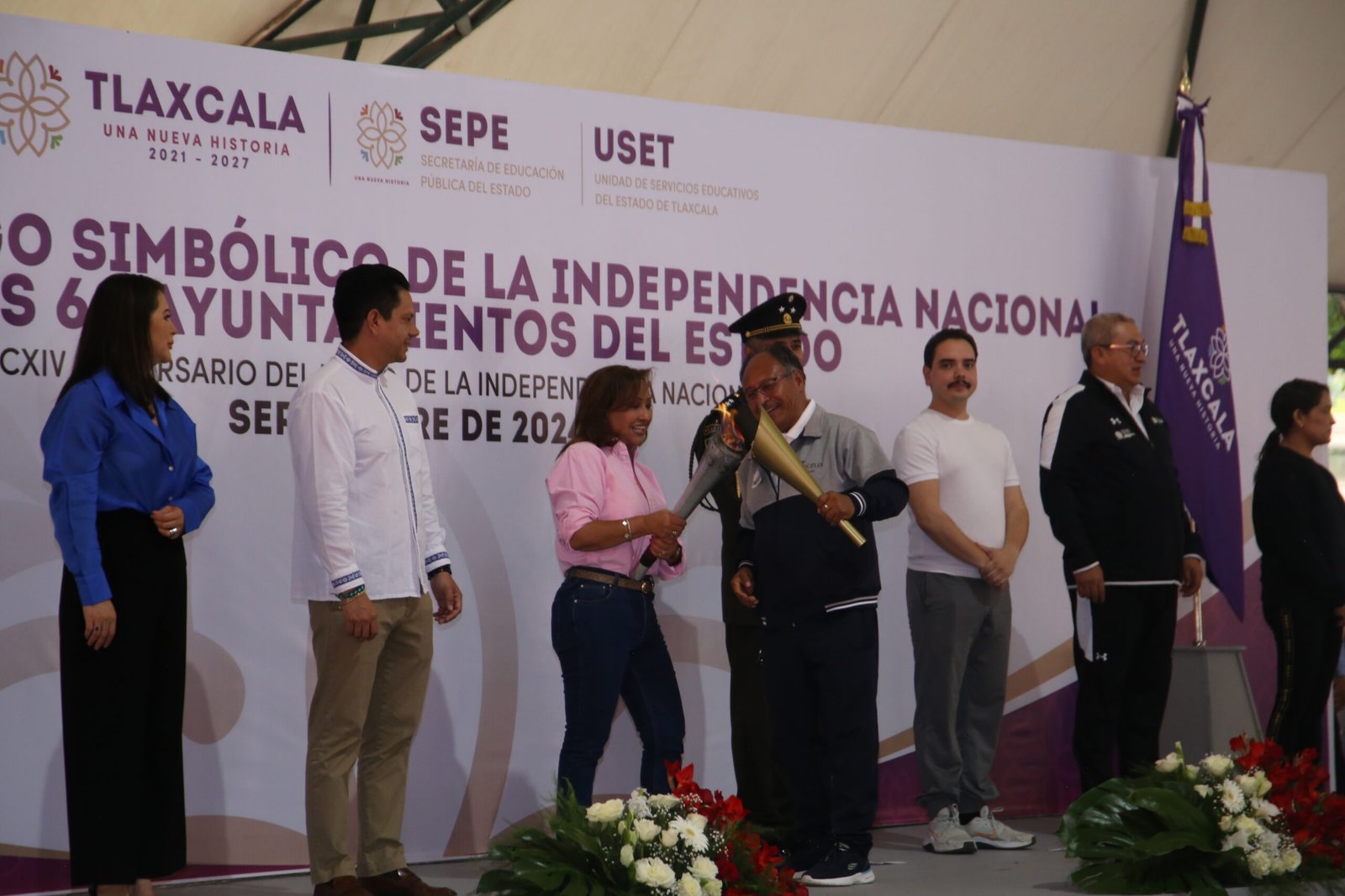 Tlaxcala, Tlax, a 15 de septiembre de 2024/JL Hertewing/ En el marco del CCXIV aniversario de la Independencia de México, el presidente municipal de Tocatlán Sergio Avendaño Pérez, acudió la mañana de este domingo 15 de septiembre al domo blanco de la capital del estado a recibir el “Fuego Simbólico de la Independencia Nacional” de manos de la gobernadora del estado Lorena Cuéllar Cisneros, en su mensaje el edil señalo que este fuego simboliza la fuerza con la que lucharon hombres y mujeres para darnos Patria Y libertad que hoy gozamos todos los mexicanos.