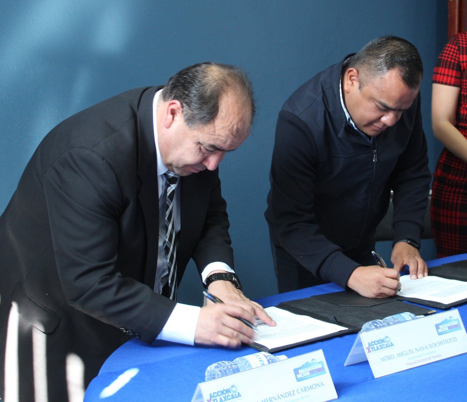 El Magistrado Presidente del TET, Miguel Nava Xochitiotzi, encabezó la firma del convenio con el Comité Directivo Estatal del Partido Acción Nacional(PAN), para el uso del Juicio en Línea.