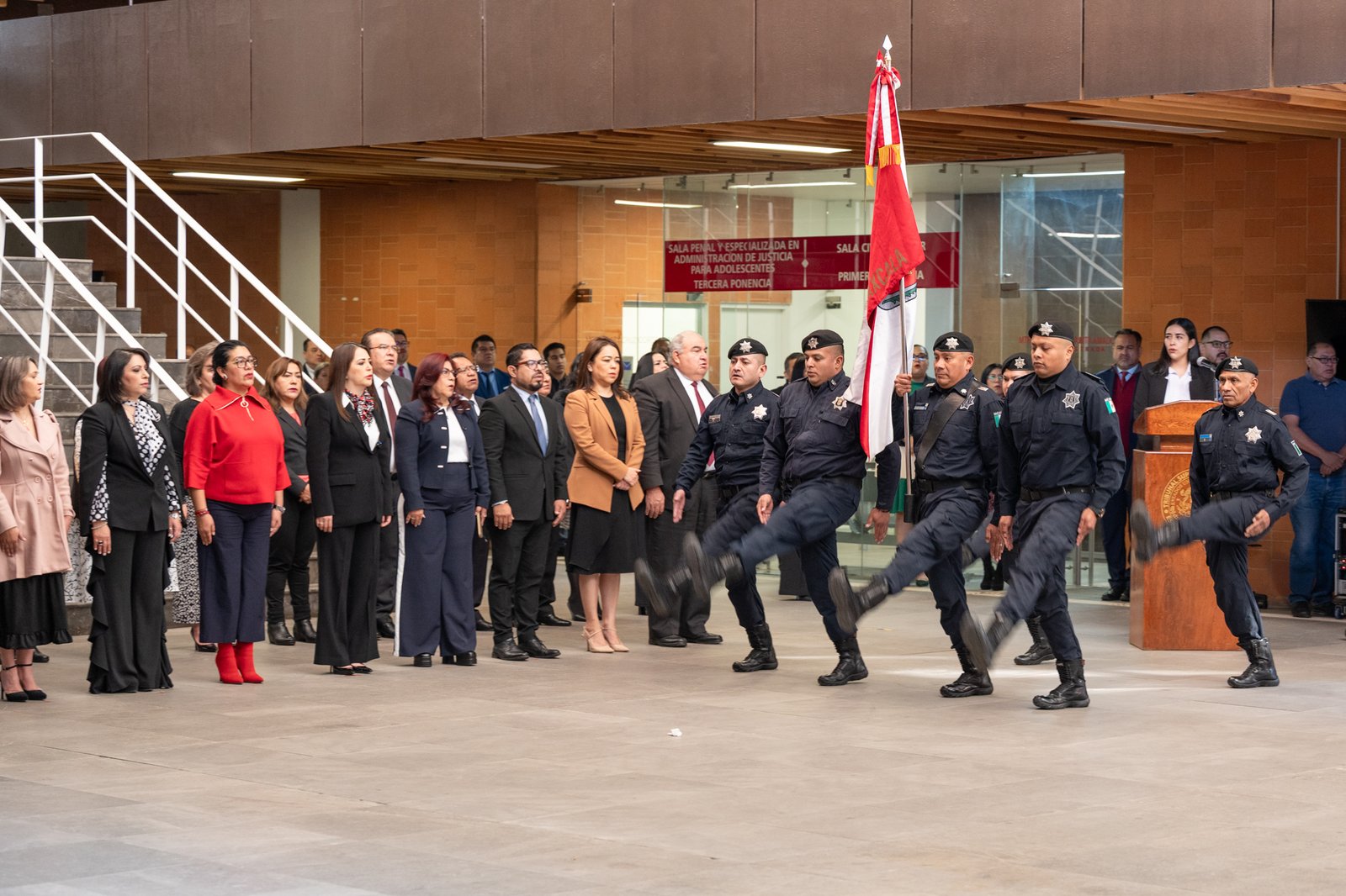 Así lo manifestó durante su mensaje en el homenaje al Lábaro Patrio que se efectuó en las instalaciones de Ciudad Judicial, en el que destacó el trabajo que magistradas, magistrados, consejeras, consejeros, juezas, jueces, así como las y los servidores públicos del Poder Judicial de Tlaxcala realizan desde sus respectivas áreas de trabajo.