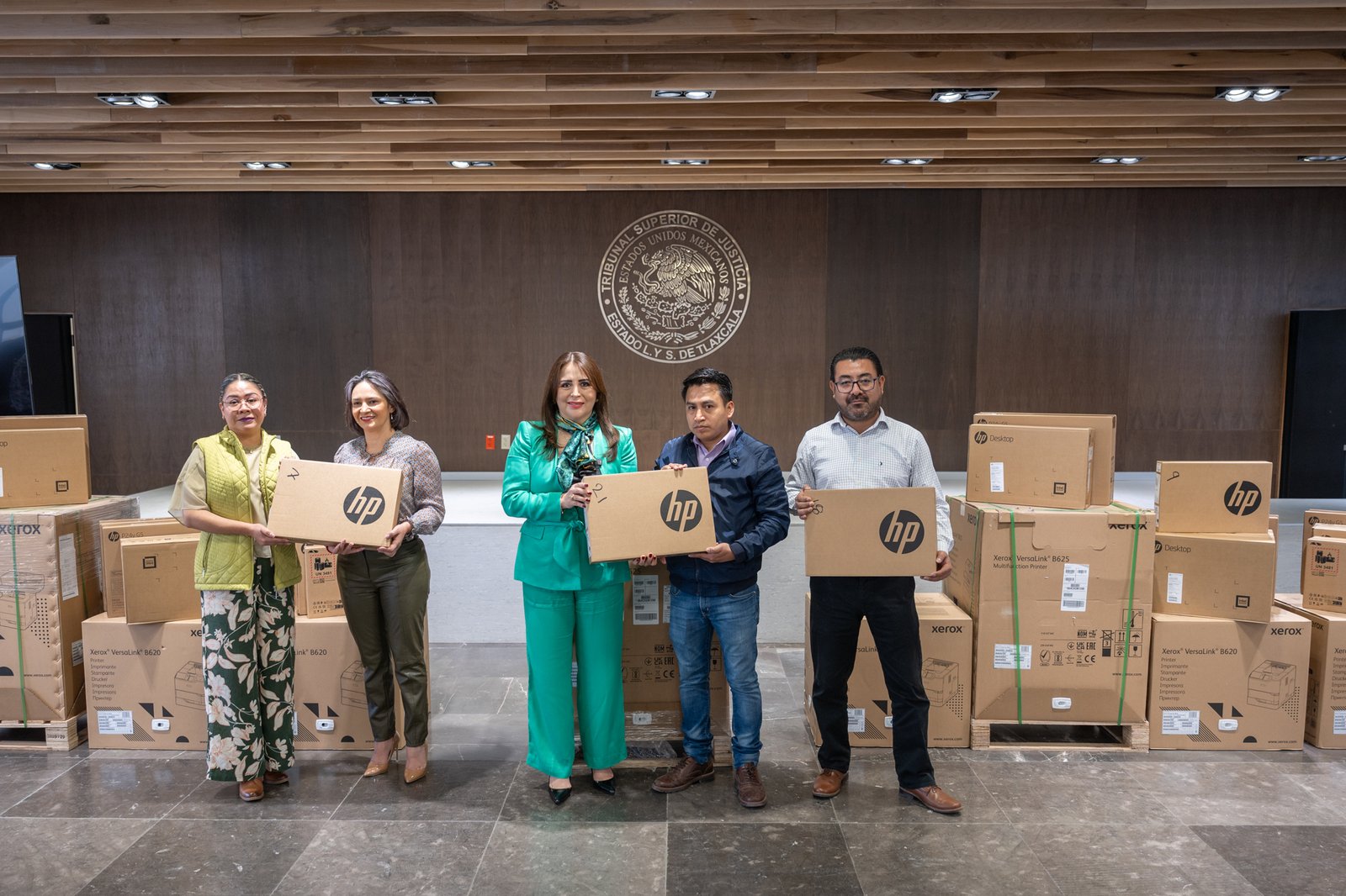 La magistrada presidenta del Tribunal Superior de Justicia y del Consejo de la Judicatura del Estado (TSJE-CJE), realizó la entrega simbólica de estos equipos y refirió que el programa de equipamiento durante su administración ha sido permanente, por lo que confió en que las y los servidores públicos hagan un uso adecuado y responsable de los mismos, sobre todo porque se trata de las herramientas que les permitirán brindar mejores resultados.