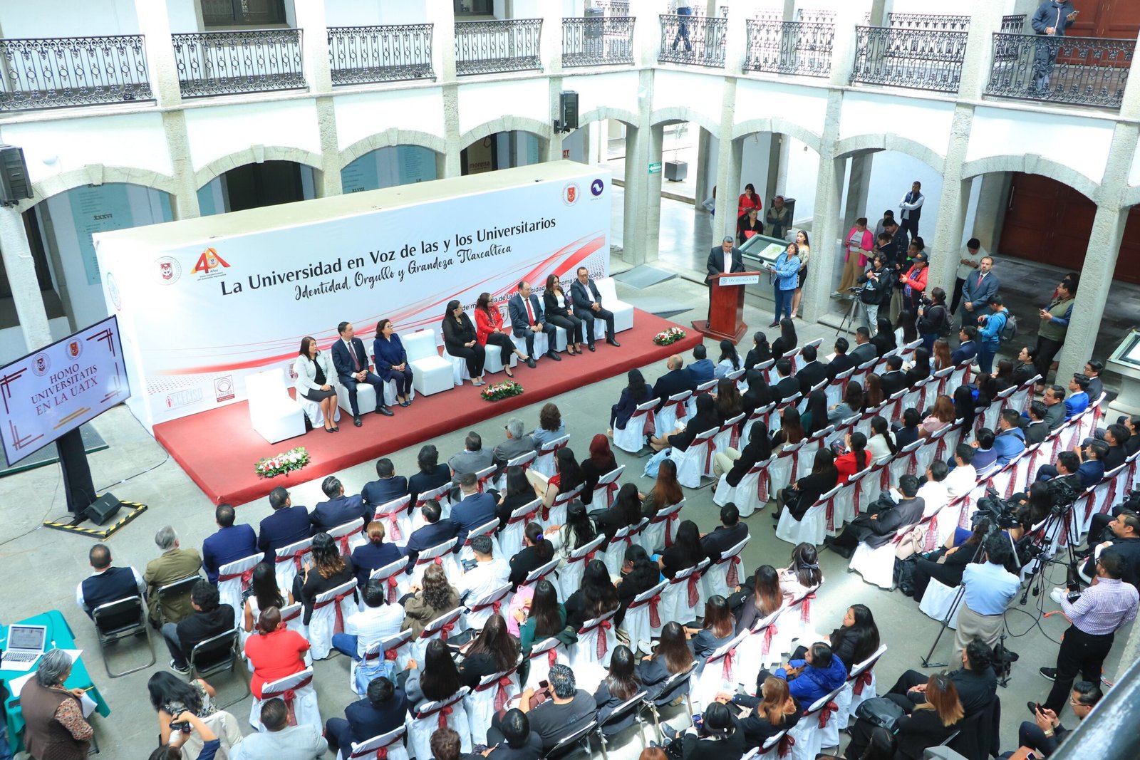 La comunidad universitaria conmemoró el Día de la Universidad, al cumplirse el primer aniversario de la develación de las letras doradas en el Muro de Honor de la Sala de Sesiones del Palacio Juárez del Poder Legislativo con la leyenda “Universidad Autónoma de Tlaxcala”, marco en el que se realizó el Foro universitario La Universidad en voz de los universitarios “Identidad, orgullo y grandeza Tlaxcalteca”, que organizó la academia de Derecho Administrativo y Fiscal de la Facultad de Derecho, Ciencias Políticas y Criminología de la máxima Casa de Estudios de la entidad.