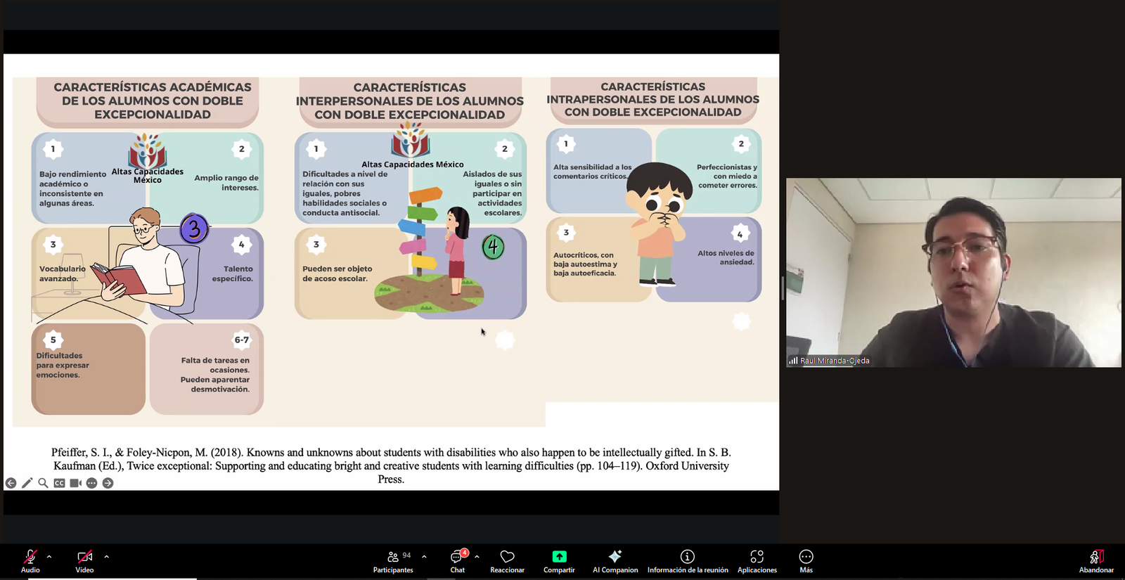 A nivel académico es importante que las instituciones educativas tengan empatía, validen las diferencias a través de la colaboración activa, académica y extracurricular, tomen en cuenta las dificultades neuronormativas y sean flexibles con los estudiantes que presentan alguna problemática del neurodesarrollo, aseveró el Doctor Raúl Alejandro Miranda Ojeda, al dictar la conferencia virtual “Neurodiversidad dentro del ambiente universitario”, por invitación de la Secretaría de Investigación Científica y Posgrado de la Universidad Autónoma de Tlaxcala (UATx).