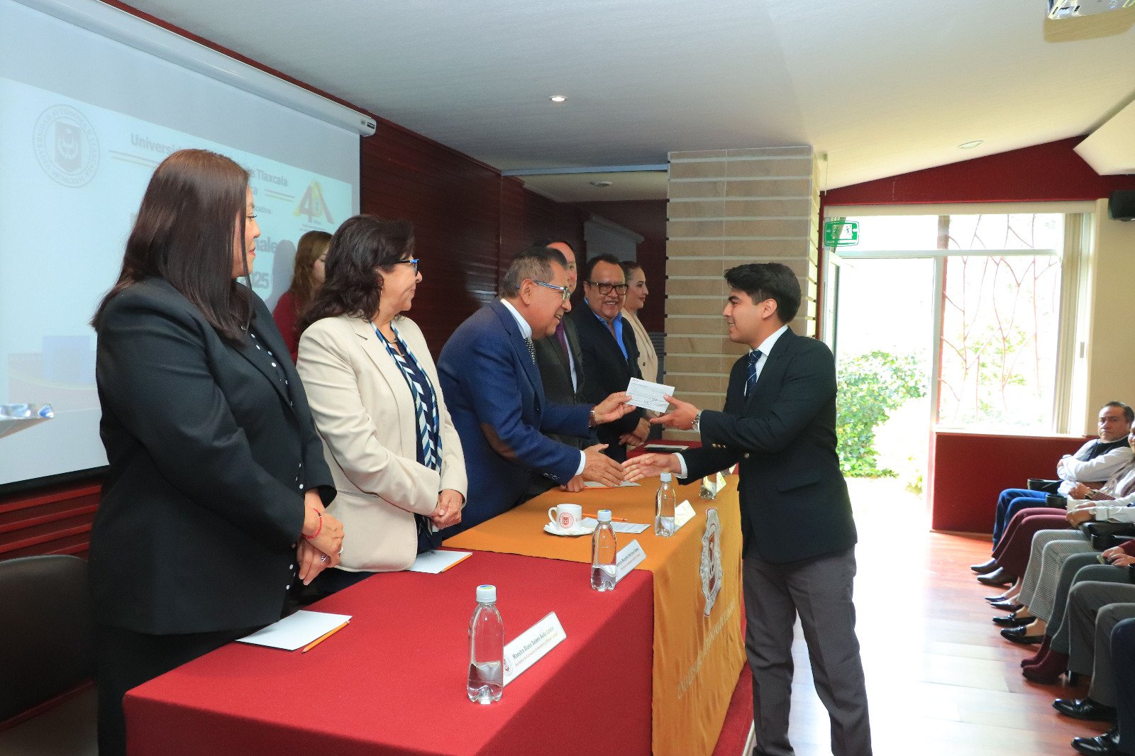 En tanto, el alumno consejero Diego Sarmiento Hernández, en representación de sus homólogos, reconoció el liderazgo y compromiso del Doctor Serafín Ortiz con la juventud tlaxcalteca, porque gracias a su visión y gestión la UATx cuenta con un sistema de becas institucionales que abre oportunidades, reduce desigualdades y los impulsa a alcanzar sus sueños, dado que la beca es confianza, motivación y compromiso para estudiar con disciplina, formarse con valores y retribuir a la sociedad con sus conocimientos.