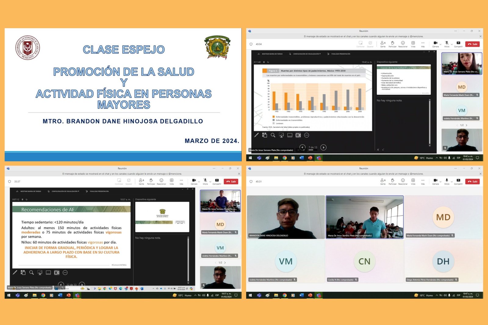 Con el propósito de generar espacios para fortalecer la praxis profesional y la docencia integradora, la Universidad Autónoma de Tlaxcala (UATx) a través de la Facultad de Ciencias para el Desarrollo Humano, en colaboración con la Facultad de Ciencias de la Conducta de la Universidad Autónoma del Estado de México (UAEM), catedráticos de la licenciaturas en Gerontología Social y en Cultura Física y Deporte respectivamente, llevaron a cabo clases espejo, donde se abordaron como tema principal la promoción de la salud y la actividad física en personas mayores.