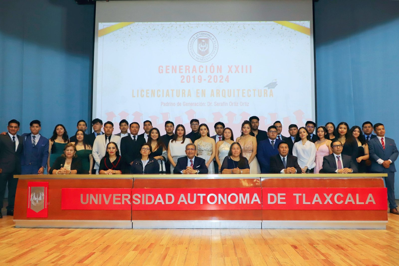 La Universidad es el faro de conocimiento y progreso de la sociedad impulsando su transformación con la práctica de valores, la buena convivencia y el compromiso social, generando vínculos de identidad, afirmó el Doctor Serafín Ortiz Ortiz, Rector de la Universidad Autónoma de Tlaxcala (UATx), durante la ceremonia de graduación de la vigésima tercera generación de la Licenciatura en Arquitectura, de la Facultad de Diseño, Arte y Arquitectura, en la que las y los egresados.