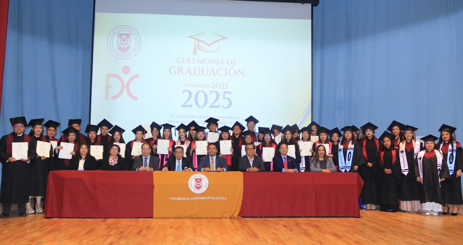 La Facultad de Ciencias para el Desarrollo Humano de la Universidad Autónoma de Tlaxcala (FCDH-UATx) se ha posicionado en el país como la “facultad de la inclusión” porque es uno de los caracteres del homo universitatis, afirmó el Doctor Serafín Ortiz Ortiz, Rector de esta máxima Casa de Estudios, al presidir la ceremonia de graduación de 35 egresados de las licenciaturas en Educación Especial, Ciencias de la Familia y Pedagogía Gerontológica, generación 2021-2025.