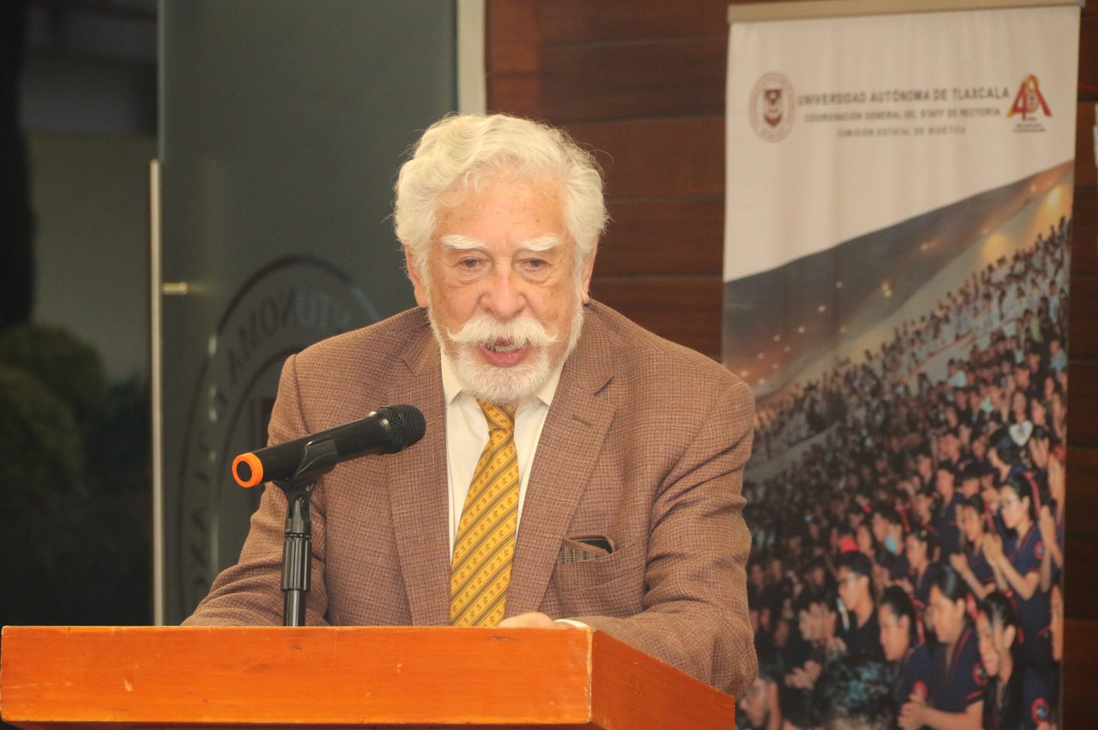 Para fomentar un espacio de reflexión crítica sobre los valores y principios éticos que sustentan la identidad institucional y fortalecen el sentido de pertenencia entre la comunidad de la Universidad Autónoma de Tlaxcala (UATx), el Rector, Doctor Serafín Ortiz Ortiz, inauguró el ciclo de Diálogos de Reflexión Bioética: “Construyendo Identidad y Pertenencia en la UATx”, con la participación del connotado experto en bioética Doctor Carlos Viesca Treviño, quien dictó la ponencia magistral “Bioética como eje transversal en la formación universitaria”.