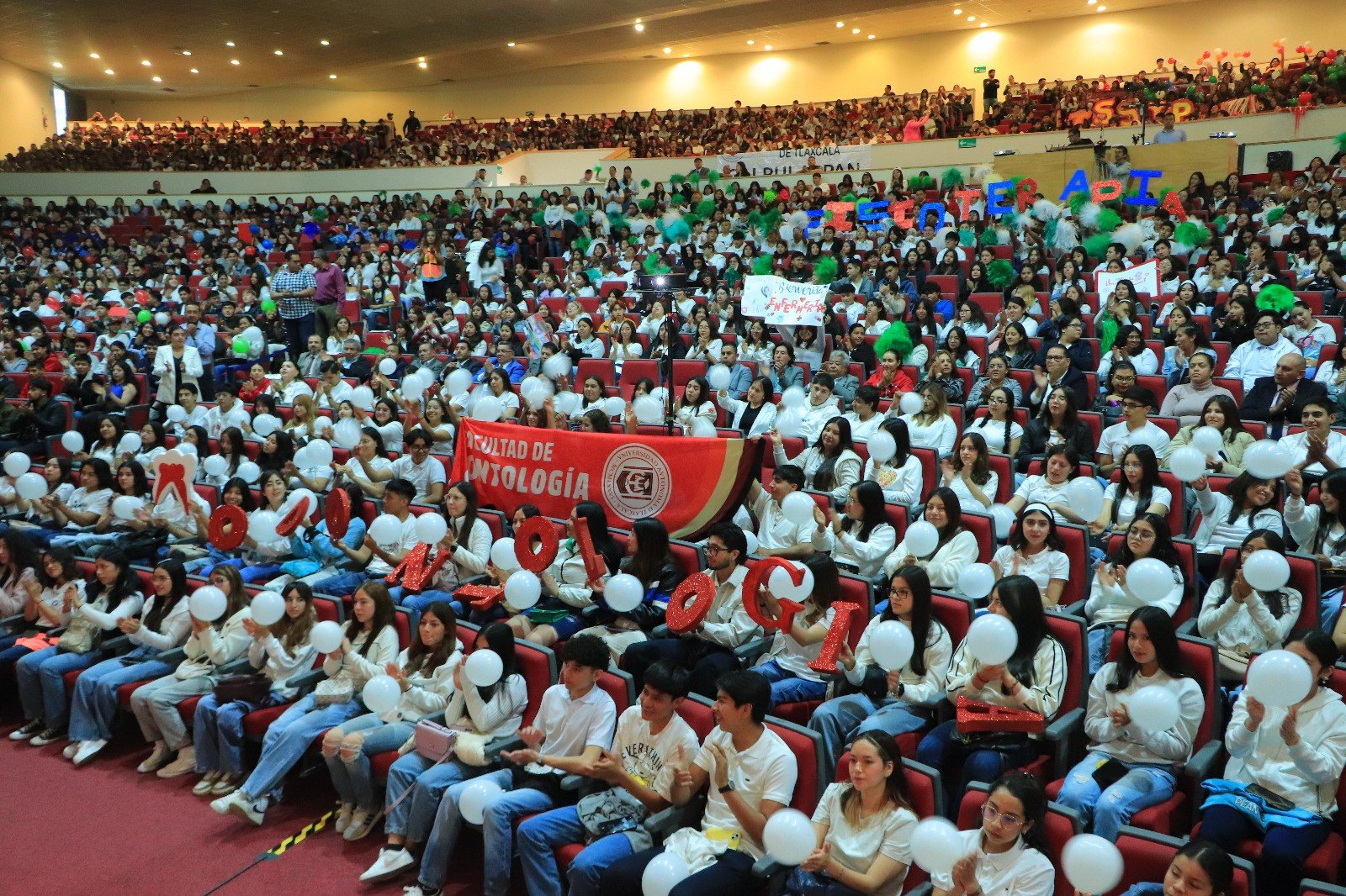 El Doctor Serafín Ortiz Ortiz, Rector de la Universidad Autónoma de Tlaxcala (UATx), dio la bienvenida a tres mil 344 estudiantes de nuevo ingreso que cursarán una de las 46 licenciaturas que ofrece la Institución en el Ciclo Otoño 2025 en sus once facultades y las unidades académicas multidisciplinarias, ubicadas en Calpulalpan, San Pablo del Monte y Santa Apolonia Teacalco, en un acto organizado por la Secretaría de Autorrealización.