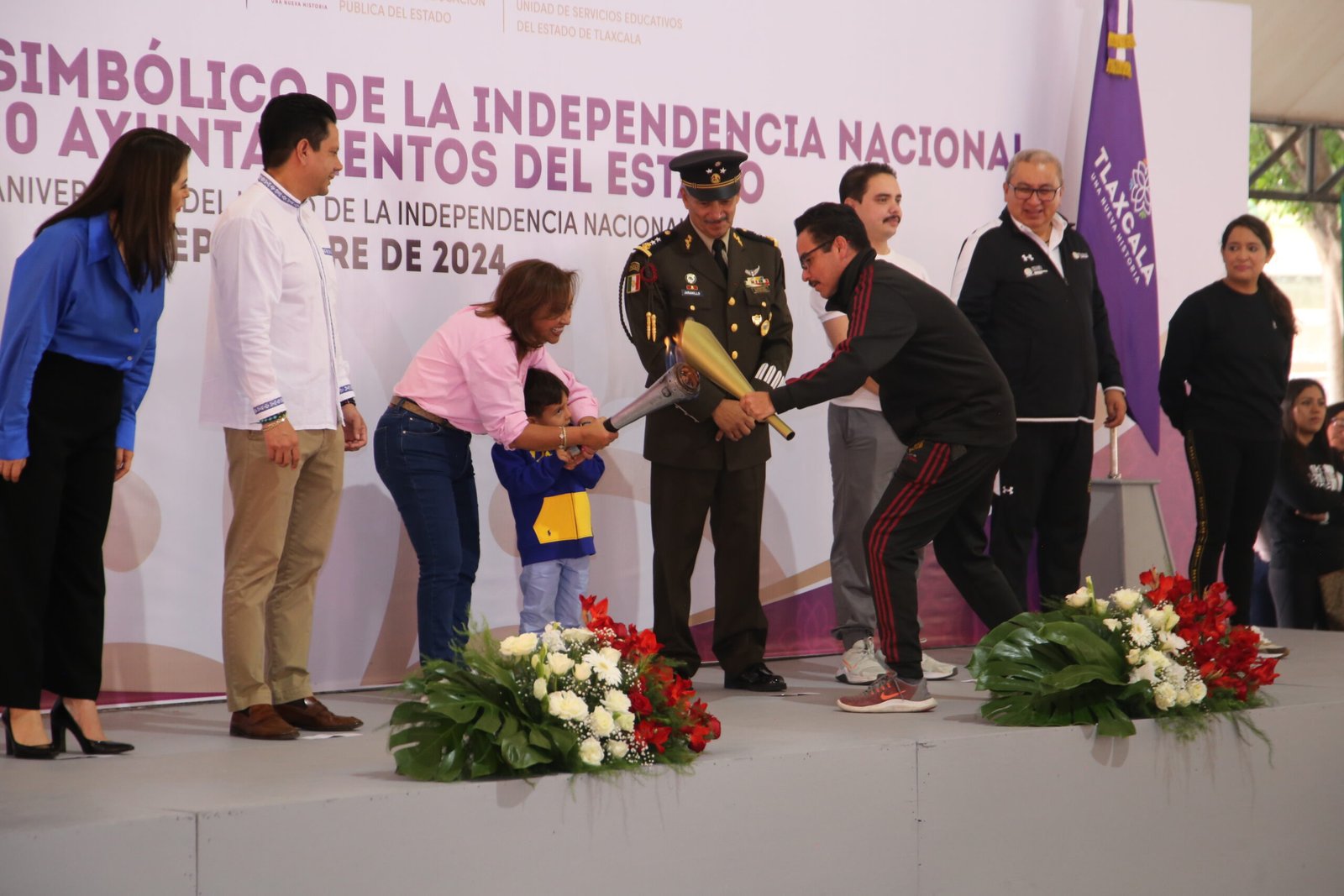 Tlaxcala, Tlax, a 15 de septiembre de 2024/JL Hertewing/ En el marco del CCXIV aniversario de la Independencia de México, el presidente municipal de Yauhquemehcan David Vega Terrazas, acudió la mañana de este domingo 15 de septiembre al domo blanco de la capital del estado a recibir el “Fuego Simbólico de la Independencia Nacional” de manos de la gobernadora del estado Lorena Cuéllar Cisneros, en su mensaje el edil señalo que este fuego simboliza la fuerza con la que lucharon hombres y mujeres para darnos Patria Y libertad que hoy gozamos todos los mexicanos y que es un legado que nos da identidad.
