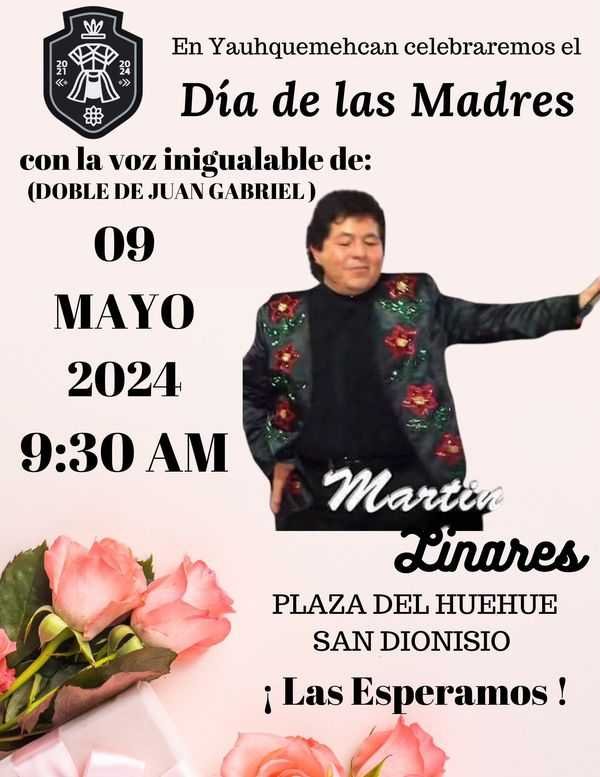 ¡Mamás de Yauhquemehcan! las esperamos este jueves 09 de Mayo 2024, a la celebración de su día, a partir de las 9:30 de la mañana en la Plaza del Huehue, cabecera municipal San Dionisio.