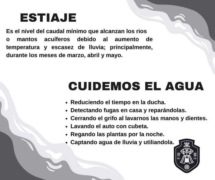 El objetivo principal es concientizar a la comunidad sobre la importancia de cuidar el agua durante la temporada de estiaje, promoviendo prácticas responsables y medidas de ahorro que contribuyan a preservar este recurso vital para las generaciones futuras.