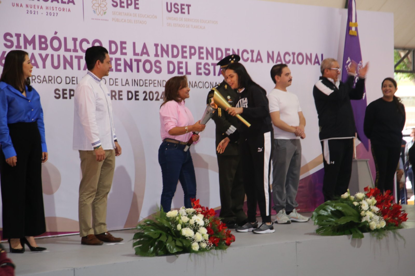 Tlaxcala, Tlax, a 15 de septiembre de 2024/JL Hertewing/ En el marco del CCXIV aniversario de la Independencia de México, la presidenta municipal de San Jerónimo Zacualpan Sandra Corona Padilla, acudió la mañana de este domingo 15 de septiembre al domo blanco de la capital del estado a recibir el “Fuego Simbólico de la Independencia Nacional” de manos de la gobernadora del estado Lorena Cuéllar Cisneros, en su mensaje la edil señalo que este fuego simboliza la fuerza con la que lucharon hombres y mujeres para darnos Patria Y libertad que hoy gozamos todos los mexicanos.