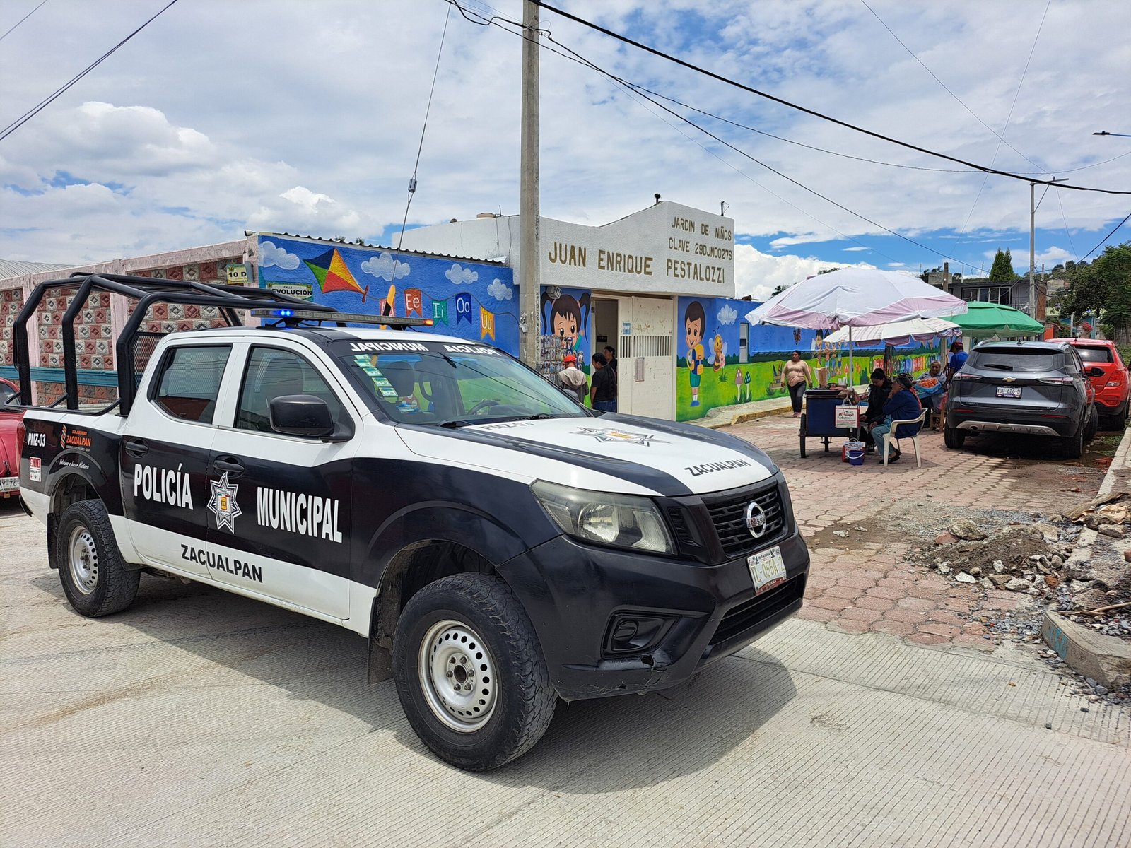 Tlaxcala, Tlax, a 12 de julio de 2024/JL Hertewing/ El presidente municipal de Zacualpan Isidro Nohpal García, preocupado por la seguridad en el municipio diseño desde el inicio de la administración diferentes estrategias, una de ellas es en las instituciones educativas que se encuentran en esta demarcación como es un jardín de niños, una primaria y un bachillerato, estas han tenido vigilancia las 24 horas del día los 365 días del año la entrada y salida hemos puesto especial atención evitando que vehículos circulen en ese momento por la entrada principal.