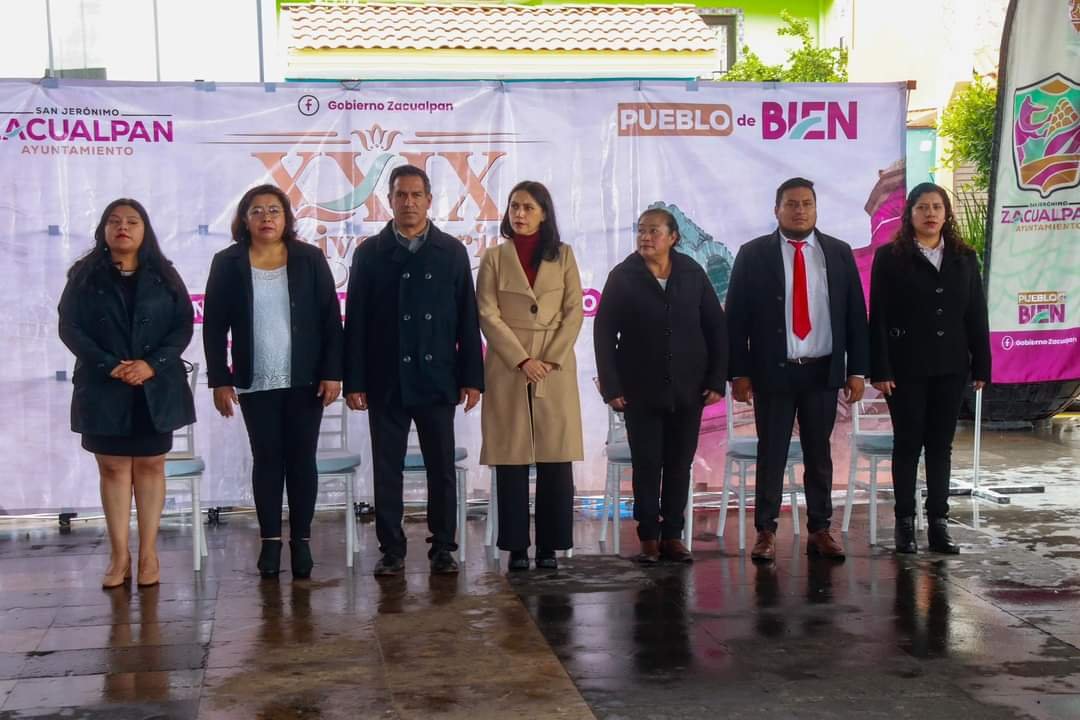 Sandra Corona comento llegamos a esta fecha con la determinación de seguir avanzando de seguir uniendo nuestras voces y esfuerzos para hacer de San Jerónimo Zacualpan un lugar donde todos soñamos y construyamos un futuro con mayor bienestar para los ciudadanos, subrayo.